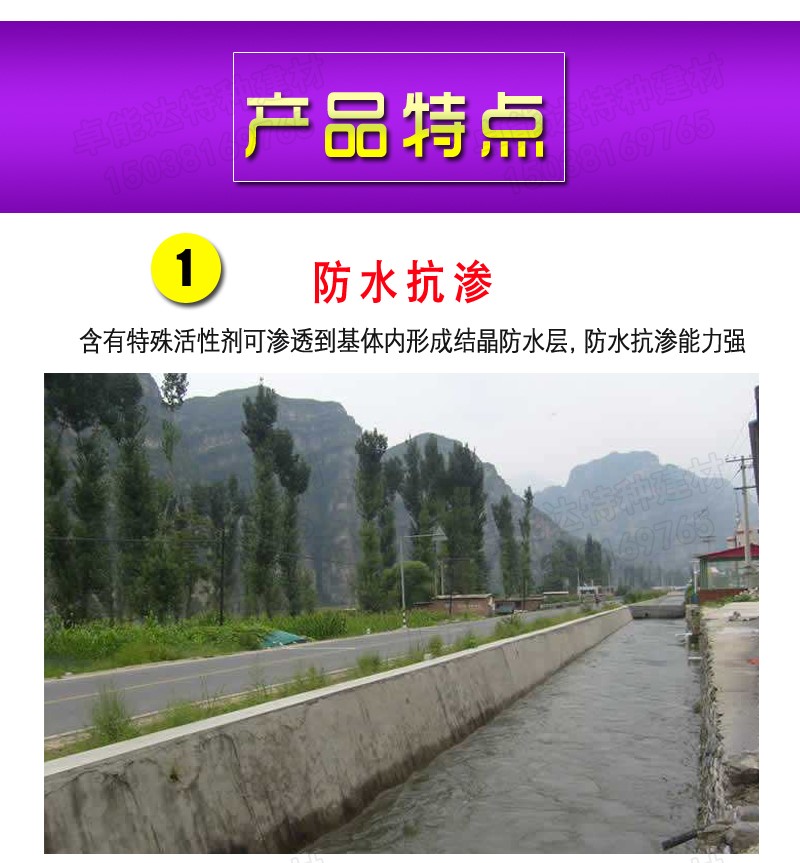 聚合物防水砂浆房顶外墙防水抗渗砂浆 本产品是由高分子聚合物、胶凝材料、细骨料、活性填料及其他功能性添加剂复合而成的新一代高性能防水材料,适用于工业与民用建筑的防水工程。 一、产品特点 1、防水抗渗效果好 二、应用范围 1、外墙面、屋面、地下室、桩基等部位的防水、防渗工程 三、性能指标JC/T984-2011《聚合物水泥防水砂浆》