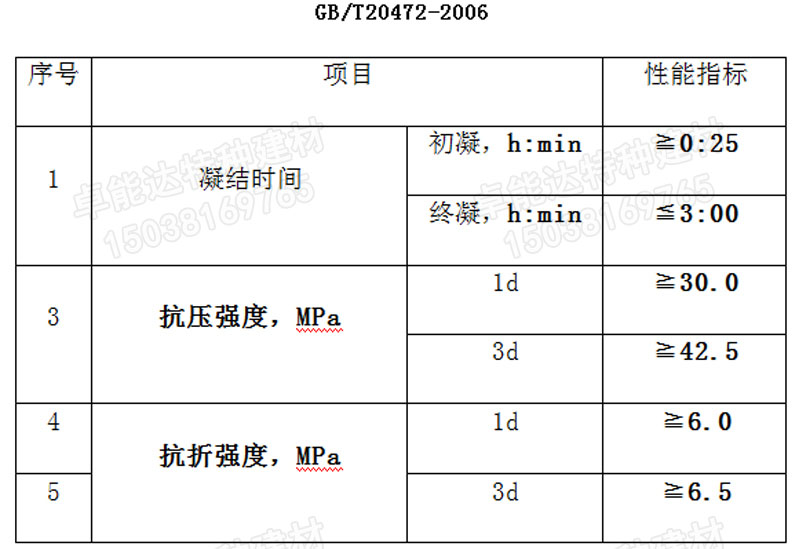 快速凝固型高强度快硬硫铝酸盐水泥 一:产品介绍 膨胀水泥是以硫铝酸盐水泥熟料为主,按适当比例配以CSA、石膏等多种功能性外掺料,经磨细制成的具有膨胀性能的水硬性胶凝材料。膨胀水泥在硬化过程中体积不会发生收缩,还略有膨胀,可以解决由于收缩带来的不利后果。具有明显的快硬、早强的特性,又有碱度低、膨胀率小,稳定快,干缩不变形的优点,与玻璃纤维复合强度保留率高,使用寿命长,是GRC制品专用水泥。双快(快凝快硬)水泥的主要特点是凝结硬化快、小时强度高,即所谓“小时水泥”。水泥凝结时间可根据施工需要用缓凝剂调节,该水泥还具有微膨胀、低温条件强度发挥正常及长期强度稳定正常等优点。硫铝酸盐水泥是一种低碱性,凝结快,早强度,后期强度不倒缩、抗腐蚀、耐磨性良好、抗冻能力强、隔热、保温等优异性能。 二、性能特点 1.由微膨胀水泥配制的混凝土在水中自由膨胀率为8~10×10-4,可在混凝土中建立0.2~0.6MPa的自应力,满足补偿收缩要求,可减少或防止混凝土收缩开裂; 2.微膨胀水泥混凝土抗渗标号大于S30 。用该水泥配制自防水混凝土,省工省料、缩短工期、且耐久性好; 3.新型微膨胀水泥早期强度高,后期强度增长较大,长期强度稳定上升; 4.微膨胀水泥配制的混凝土因内部建立有膨胀自应力,与钢筋产生更强的握裹力; 5.不含氯盐,对钢筋无锈蚀。 1.凝结硬化快 凝结时间可以调节。双快水泥在数分钟内开始硬化,可以满足紧急抢修工程需要。对于要求凝结时间较长的工程,可采用酒石酸、柠檬酸或硼酸作缓凝剂,一般掺入0.1---0.2%(占水泥量、溶于拌合水中),凝结时间可延长至20--40分钟。 2、小时强度高,后期强度稳定增长 从表中可见,高强型双快水泥2h强度20MPa以上,4h强度达到30MPa左右,28天强度为60MPa以上。 3、水泥具有微膨胀性能 双快水泥水化过程上形成较多水化的硫酸钙使水泥产生微膨胀,从而具有良好的密实性,水泥具有良好的抗渗性。一般硅酸盐水泥在空气中硬化时,体积会发生收缩。 收缩会使水泥石结构产生微裂缝,降低水泥石结构的密实性,影响结构的抗渗、抗冻、抗腐蚀等。 4、双快水泥抗蚀性能良好 在低温条件下仍能发挥较高的小时强度。[1] 具有明显的快硬、早强的特性,又有碱度低、膨胀率小,稳定快,干缩不变形的优点,与玻璃纤维复合强度保留率高,使用寿命长,是GRC制品专用水泥。 三、主要用途 主要用于紧急抢修工程、地下工程、隧道工程、锚喷支护工程、截水堵漏以及公路面抢修等工程 广泛应用在房屋,市政道路,桥梁,隧道,地下,人防的抗渗,防漏,防潮等工程 1.防渗抗裂自防水混凝土工程,如地铁、人防工程、建筑物地下室、水池、防水屋面等; 2.补偿收缩混凝土结构工程; 3.补强和防渗砂浆抹面工程; 4.现浇混凝土工程的后浇带浇注; 5.大口径混凝土排水管以及接缝、梁柱和管道接头; 6.配置用于机床底座和地脚螺栓锚固用二次灌浆材料。 四:指标要求:GB/T20472-2006