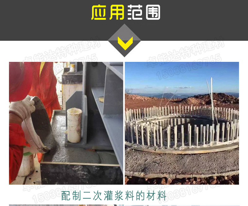 五、注意事项 1.施工前应作试配,以确定混凝土(或砂浆)合理的膨胀量; 2..微膨胀水泥一般情况下不与其它品种水泥混用。 3.、产品在使用前,应做好准备工作,已搅拌过的物料一定在初凝前用完,砂浆或砼失去流动性后不得二次搅拌。 4.、在使用过程中,若感觉凝结时间不合适,可适当用硫铝专用速凝剂或缓凝剂进行调整,加入量需经过试验而定。 5.、胶凝剂制品必须在终凝后开始养护,并且养护期不得小于三天