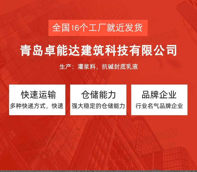 基层表面应干燥、坚固、清洁,如有灰尘、污垢、油渍、油漆、涂料、石灰或石膏残迹等均需清除干净, 二、施工工艺 在抗碱封底乳液的施工过程中和施工后,施工现场应保持轻微的通风,但要避免强烈的空气流动。 三、包装贮存 塑料桶包装,20kg/桶;室内正温、阴凉、干燥、通风储存;保质期为12个月。 利用乳液的超微粒子性能充分渗透到建筑物主体结构微细空隙中,形成具有较强粘结力,硬度较高的致密涂层, 1.超微粒子 2.黏度低,渗透性好 3.抗碱性能好。 4.耐老化 5.防水 紧缩混凝土毛孔,增加密度 双向粘结,使基层与面层粘结牢固 .黏度低,渗透性好渗透封闭成型,防水防潮,防霉抗碱 1.密封性好 成膜性好,聚合速度快,同时产物分子量高,集合可以在较高或低温度下进行 2.稳定性好 乳胶粘度低水做介质,乳胶粘度低,有利于搅拌传热、输送和连续生产 3.施工简单,可喷涂、刷涂、辊涂 1.优异的耐候性保护及装饰效果持久。防止漆膜粉化发挥面漆的全部性能。 用途:专为各种基面底材封闭碱性以防止水溶盐析出及随之而来的剥落巩固墙面。 2.阻隔从混凝土毛细孔渗出的盐碱,可在混凝土表层形成一层致密的膜对混凝土毛细孔进行高效封闭阻隔从混凝土毛细孔渗出的盐碱 3.对混凝土毛细孔进行高效封闭 可在混凝土表层形成一层致密的膜对混凝土毛细孔进行高效封闭 4.有较低的成膜温度 可在混凝土表层形成一层致密的膜 5.乳液耐碱性优异 乳液耐碱性优异乳液渗透性好 6.分散性好/润湿性强/降粘突出/遮盖力优异 施工方法: ①清理基面,保持干净、不松动、无杂质,松动及开裂部位应事先凿除并修补好。 ②用滚筒或者毛刷由上而下把浆料均匀的涂刷到基面上,不能漏刷,等待干燥。 ③必须加强通风,自然养护即可,待浆料实干后(约12小时)方可开展后续的工序。 1.封闭基层防止空鼓 墙面刮好了腻子,但没过多久就开始返潮空鼓、开裂严重影响墙面美观,罪魁祸首就是因为墙面没做界面剂 2.加固基面预防起灰 墙砖已经贴好,但过段时间开始空鼓,严重的时候还会脱落,因为基层没有处理,开始起碱,附着力不够导致掉砖。 3.基层处理预防发霉 很多时候墙面腻子会起霉点明明用了防霉腻子,却还是会发霉,就是因为基层没有预先处理。